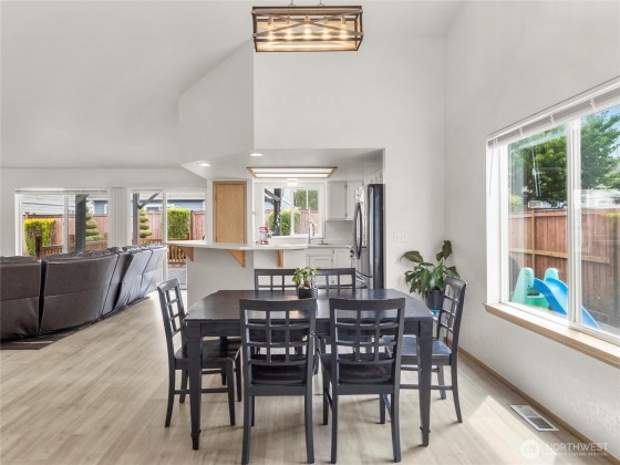 Charming 3-bedroom, 2-bath home nestled in the heart of Lacey! Just minutes from parks, schools,JBLM and local amenities, this well-maintained gem features beautiful hardwood floors, a spacious kitchen with stainless steel appliances, A/C! and a light-filled open layout. Enjoy year-round outdoor living on the covered back patio, perfect for entertaining or relaxing. Complete with a 2-car garage and a fully fenced yard, New furnace and newer roof( couple years old) —this home offers comfort, convenience, and classic style in a prime location! Va assumable! Ask agent for more details