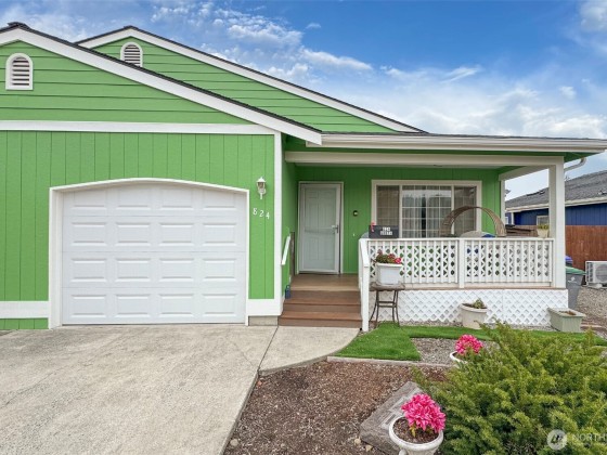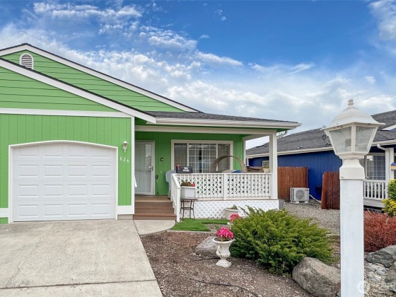 Duplex style condo with just one shared wall, and exceptional light with southwest exposure and partial mountain view;this unit has three full bedrooms with closets. Open kitchen with newer appliances. Energy efficient heat pump and AC. Covered front porch deck, side deck and rear patio with private "AstroTurf" fenced area for low maintenance or small pets to enjoy. This convenient, well maintained complex of just 12 units is close to shopping and just a short walk to Carrie Blake Park, and the Olympic Discovery Trail. A short drive to Port Williams beach, and John Wayne Marina. Easy access to town and all amenities! Spacious garage with plenty of room for parking and storage. Reasonable HOA fees cover landscaping and exterior maintenance.