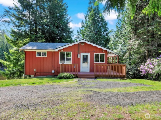 DEAL ALERT!!! Nestled at the end of a long private drive, this move-in ready, no-bank waterfront home on sought-after Mason Lake offers peaceful lakefront living with stunning views of a nature-filled lagoon. Enjoy 60’ of frontage, two brand-new docks, new carpet and paint, a hot tub, and a tranquil setting in one of the lake’s calmest areas. Paddleboard, kayak, or explore nearly 1,000 acres of crystal-clear water—perfect for boating, fishing, and watersports. The expansive 355' x 60' lot offers space to add a garage or shop. Rare opportunity to own a lakeside retreat at this price on beautiful Mason Lake! 4.75% interest rate available by assuming the existing assumable $351K loan and it's already 3+ years into the amortization cycle!!!