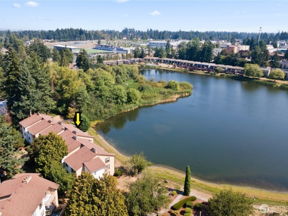 Top-floor condo in desirable Lakeside Village Condos w/sweeping views of Easter Lake! Light-filled living room boasts vaulted ceilings & a cozy wood-burning fireplace, while the dining flows seamlessly into an updated galley kitchen featuring stainless appliances, butcher block counters & floating shelves. Bathrooms shine w/contemporary vanities & sleek designer sinks. Relax on your private balcony overlooking the lake or enjoy the community’s in-ground pool, tennis & basketball courts, cabana & tranquil lakeside walkways. Conveniently located near shopping, dining, theaters, fitness & transit—an ideal blend of comfort, views & lifestyle. Welcome Home!