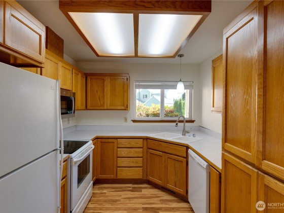 Well-maintained townhouse-style condo in the desirable Birch Tree community. This spacious home features an open-concept living and dining area with durable laminate flooring, a cozy gas fireplace, and access to a private back deck—ideal for relaxing or entertaining. The kitchen offers generous cabinet and counter space. Upstairs, the primary suite includes a full bath and walk-in closet. Attached garage and additional parking in front add convenience. Enjoy low-maintenance living in a quiet setting just minutes from NAS Whidbey, schools, shopping, and downtown Oak Harbor. Perfect for full-time living or a lock-and-leave lifestyle.