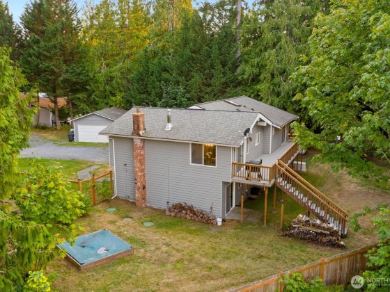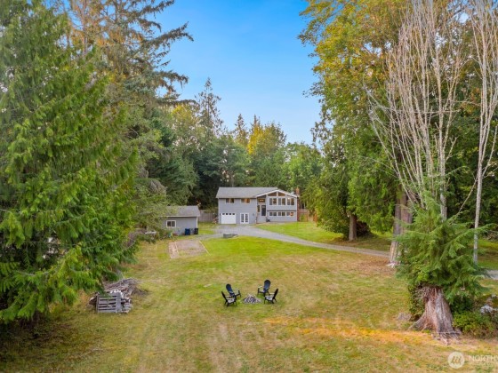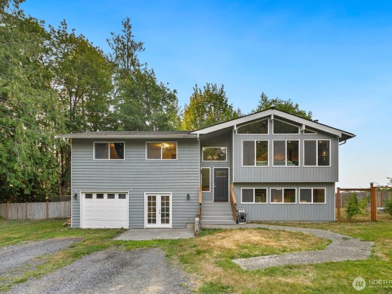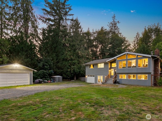 A rare opportunity on Machias Ridge! This 2-parcel property totals over 5 acres and offers views in a private, serene setting. The spacious split-level home has been thoughtfully updated with new electrical, a whole-home generator, new fireplace, flooring, and windows. The main level showcases vaulted ceilings with striking wood beams and an open, inviting layout. The lower level is perfect for entertaining, featuring a built-in bar with seating, lounge area, and a flex room with slider and French doors. Both an attached and detached garage provide ample parking, storage, or shop space. With its blend of comfort, function, and stunning scenery, this property is ideal for those seeking a versatile retreat with room to grow. RV hook up.