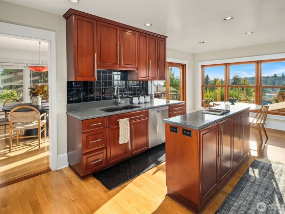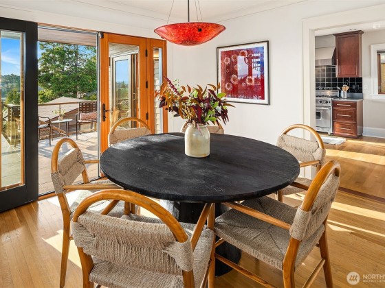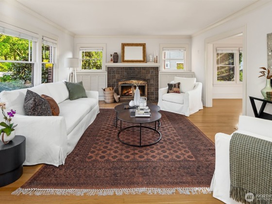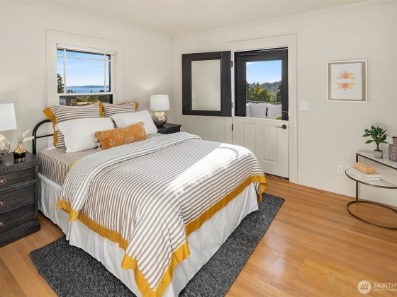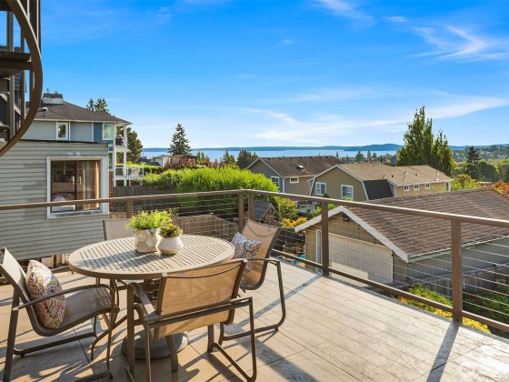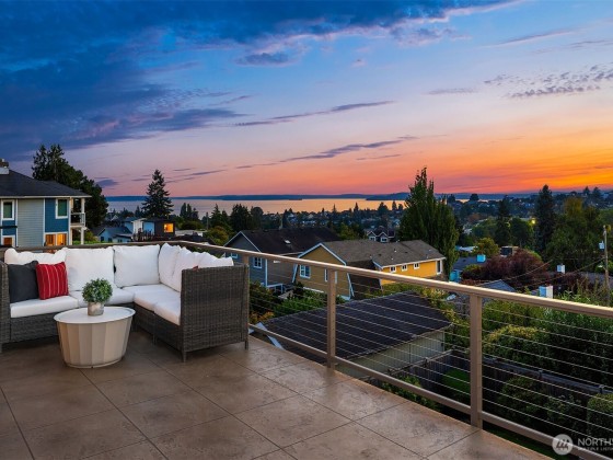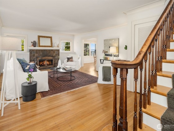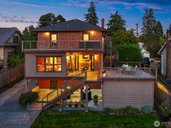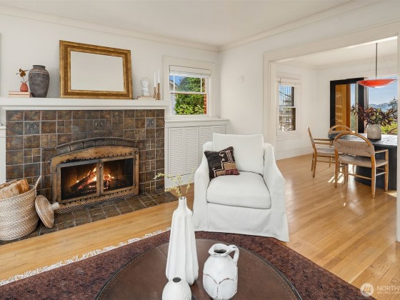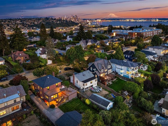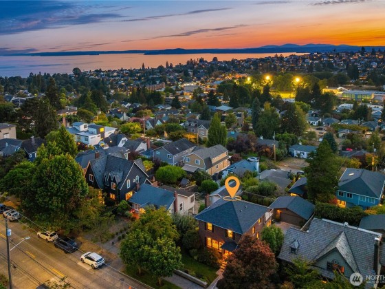 Discover a truly one-of-a-kind 1924 Magnolia Colonial, set on a rare oversized lot with stunning Puget Sound views. Impeccably cared for 38 years, this home blends original charm with unexpected modern touches. From the original tiled fireplace, moldings, to rich hardwoods, every corner tells a story. French doors open to private two-tier deck where sunsets paint the sky. Remodeled kitchen & breakfast nook frame west-facing views, creating a space that’s both functional and inspiring. Upstairs, 3 bedrooms & 2 bathrooms offer quiet retreat and dreamy views from the upper deck. With flexible lower-level space and beautifully landscaped private yard, this home offers endless possibilities, all wrapped in character you won't find anywhere else.
