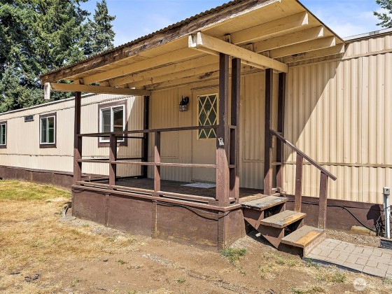 See what Nisqually Pines Community has to offer at this 2 bed 2 bath home with shop! Step inside to find fresh carpet, paint and new windows. Large kitchen has plenty of cabinet space with nice sized dinning area. Primary bedroom features attached full bath with large soaking tub. Full bath in hallway for second bedroom. Enjoy cars? This shop is 23x23 with 10 foot ceilings with a 10 foot door, perfect for working on cars or other hobbies. Large storage attached to shop with poured concrete in back for more car space! Large lot with small green belt in back for privacy. Lots of summer activities to enjoy with the community pool, park on the Nisqually river, trails and playgrounds. Roof done 2018. Close to shopping and JBLM. Land is included.