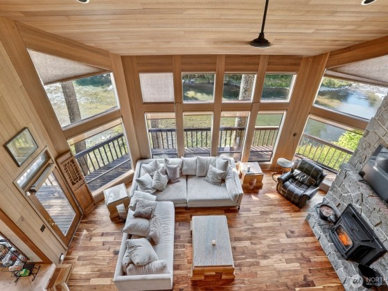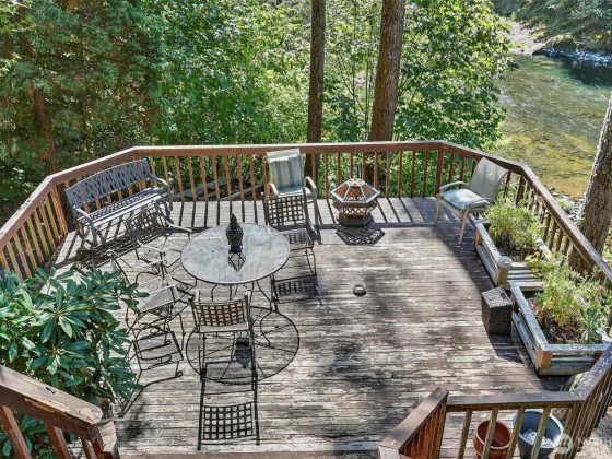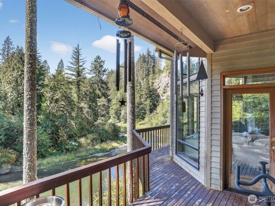 Set on 2 acres along the Kalama River, this property offers both natural beauty and functional potential. The upper portion by the driveway provides flat, usable space with sweeping river views—ideal for a possible shop or ADU (buyer to do due diligence). A spacious garage and wrap-around deck with a dedicated viewing platform make it easy to enjoy the river setting. Direct river access enhances the lifestyle, and while the property once had a private boat launch, it could be restored for future use. Tucked away in a secluded location, this retreat combines privacy, views, and opportunity.
