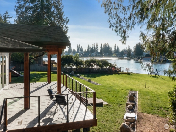 Welcome to your secluded outdoor oasis. Stunning new construction waterfront living on gorgeous Lake Tapps! Custom home situated on a rare lot with 246 ft of no bank waterfront. Your dream kitchen has arrived-massive island, abundant natural light, walk-in pantry, pot filler and countertop glass washer. Open concept family room, soothing lake views pouring onto hand crafted cedar ceiling deck. Five bedrooms, primary on main. Bring your wardrobes-walk-in closets galore. Gorgeous double headed shower. Spacious bonus room or media room upstairs, vast views of the lake on the main and 2nd floor. Laundry on both floors. Bring s'mores to the beautiful brick firepit. Enjoy access to Church Lake Park with beachfront, boat launch, playground.
