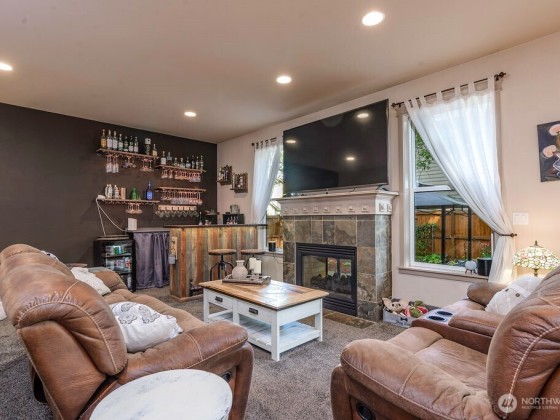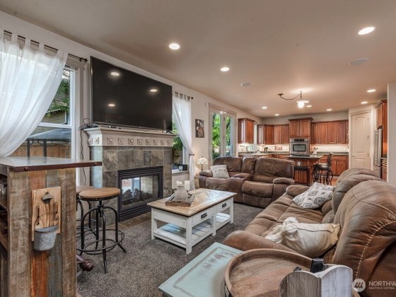 A fully assumable VA loan at 2.495% makes this house very affordable!! This quality-built home offers over 3,000 sq ft of refined living space and is tucked within Medina’s exclusive gated community. Vaulted ceilings enhance the spacious living room—large enough to accommodate a baby grand piano. The kitchen, just around the corner from the formal dining room, features granite counters, a center island, and double ovens. The home includes 4 bedrooms and 2.5 baths, plus a rec room with two-sided gas fireplace and a pre-wired media room upstairs. The generous primary suite offers a spa-like bath and an oversized walk-in closet. A separate bonus room with its own entrance is perfect for a second office or studio.