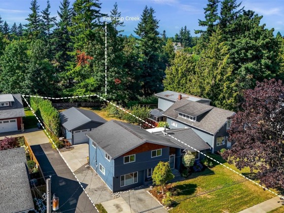 Located in one of Lynden’s most desirable neighborhoods, this spacious home sits on a large lot with 77 feet of Fishtrap Creek frontage. Enjoy privacy, mature fruit trees, and garden space, just steps from Schoolyard Park and minutes from downtown. Inside, you'll find acacia hardwood floors, updated vinyl windows, a natural gas fireplace, stainless steel appliances, and all appliances stay, including a second washer. With 3 bedrooms up, 1 bedroom and a large family room down, plus extra bonus space in the basement, there’s plenty of room to spread out. Detached 2-car garage with shop area and separate garage door for garden tools. Quiet setting with a beautiful creekside backdrop.