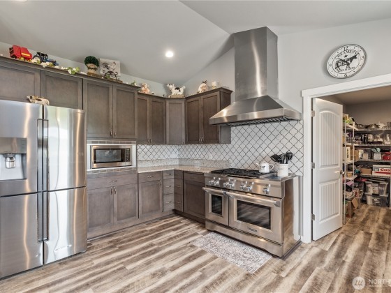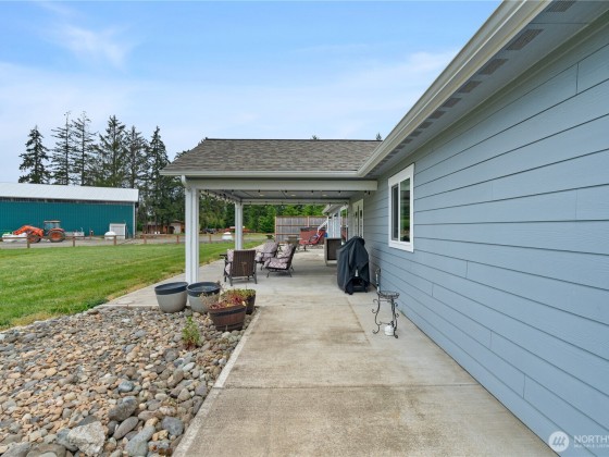 Escape to 38 acres of privacy with this beautiful 3-bed, 2-bath, 2,500sq ft home. The thoughtfully designed living space features LVP flooring, 36" doorways, and zero-entry access. The kitchen is a chef's dream, with granite countertops, a massive walk-in pantry, and high-end finishes. Enjoy year-round comfort with two ductless heat pumps and a propane fireplace. Unwind in your private spa or sit under the covered patio and enjoy the vast pasture land. A 50'x60' barn with 18' 6" clearance perfect for farm equipment, storage or etc. The home is complemented by a paved driveway, 3-car garage, tankless water heater, soft water system, and is wired for a generator. There are also two full RV hookups making entertaining guests a breeze!
