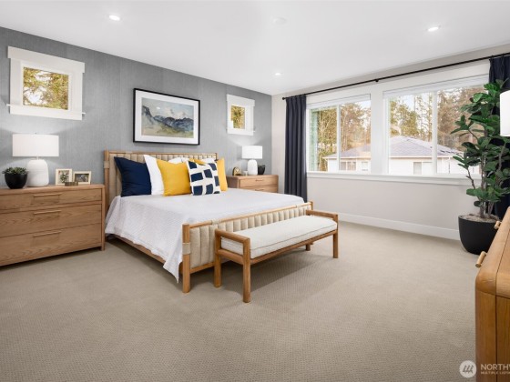 Welcome Home to Liberty View, proudly presented by the New Home Company! This boutique Bothell community of 23 single family homes embraces enchanting Cascade & valley views. The Victorian 4 bed/3.5 bath design offers multi-level living, w/ an open concept kitchen, great rm & dining rm, warmed by a gas fireplace. n adjacent covered deck featuring a gas stub is ready for entertaining. A finished daylight basement is complete w/a bonus rm, bedroom & separate bath perfect for a private guest sanctuary. This level opens to a covered patio overlooking a fenced + fully landscaped rear yard. A light filled,2nd fl. loft hosts entry to the Primary bed.& ensuite bath+2 bedrooms+ large hall bath + laundry rm. All appliances included and move-in ready!