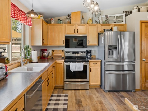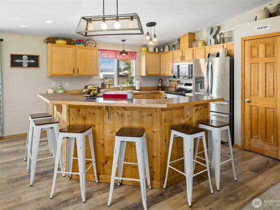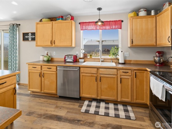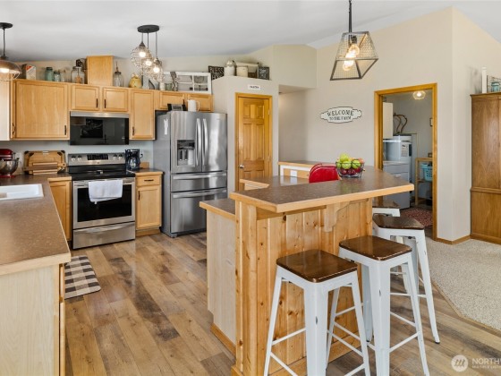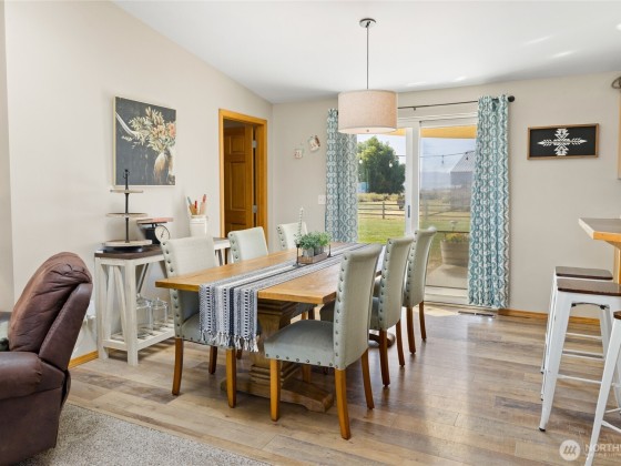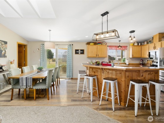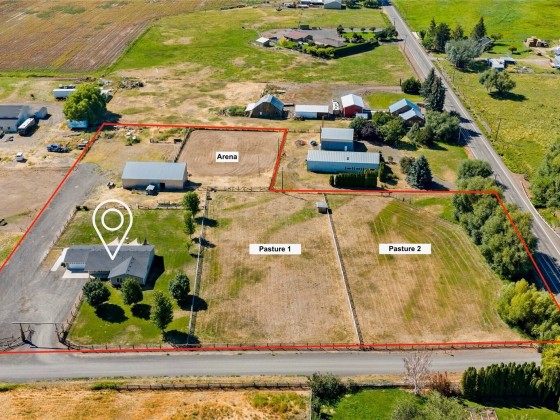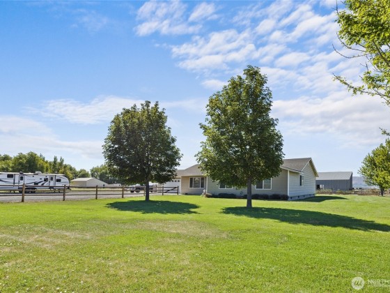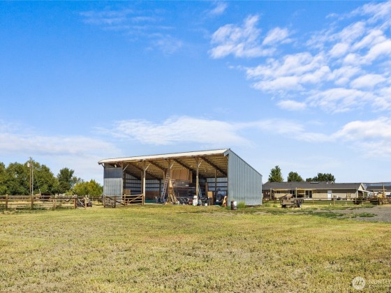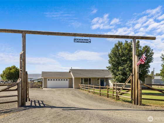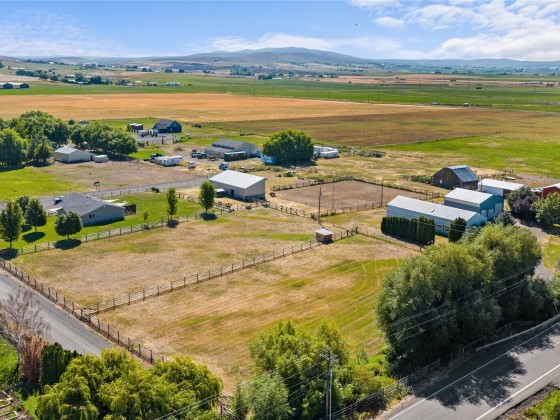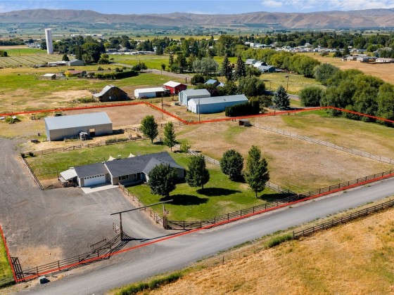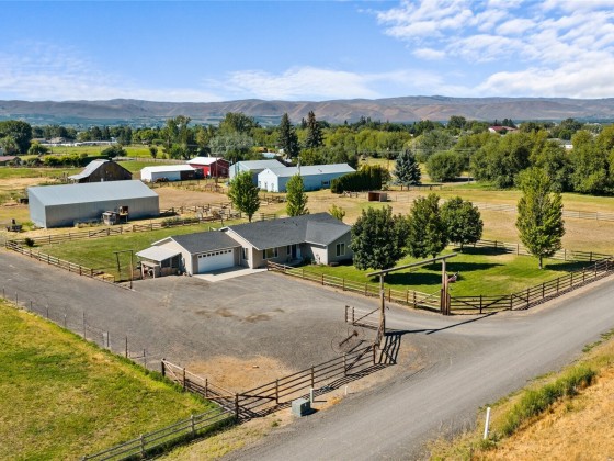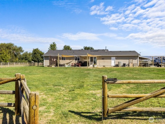 2,100+sqft home with hard-to-find 4 bedrooms, 2 bathrooms, & highly versatile layout. The spacious eat-in kitchen overlooks a vaulted great room with skylights & pellet stove-perfect for relaxing or hosting guests. The spacious primary suite has shower and soaking tub, & walk in closet. The other 3 guest rooms are large as well and share another full bath. The convenient entry from the garage provides useful storage & space to kick off the boots! Step outside to a generous backyard & patio area ideal for gatherings & outdoor living. Set on 4.11 fully fenced acres w/ custom dowel fencing, irrigation, RV hookups, 25×70 pole barn w/ tack room, riding arena, & stalls; ready for your horse/livestock. A rare find—move-in-ready & waiting for you!