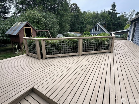 A move in ready, light filled house with a layout that provides for privacy with two bedrooms and bathrooms at opposite ends of the house. Sliding doors from the living, dining room and master bedroom lead onto a large deck that spans the back yard and overlooks the garden and firepit area. The kitchens and bathrooms have all been stylishly updated. The spacious master bedroom has an en suite bathroom and walk in closet. The living room has a wood burning fireplace and is right off the entry hallway. As part of the Admirals Cove community, you will have access to the Beach Club with a pool, beach access, a club house and a playground. One side of the front entry porch is a gate, so a ramp could be built to allow for disabled access.