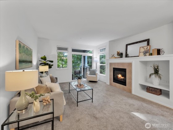 A First-Time-Home-Buyer MUST SEE! FHA approved, NO rental cap, LOW HOA dues, + extra parking for days. Woodland Condo's newest renovated 3 bedroom is completely turn-key! Enjoy the convenience of a private garage w/ direct access to this corner-unit with no shared walls. Backed up to a greenbelt, the large windows allow the greenery and sunlight to flood into the open floor plan anchored by a beautiful gas fireplace. The spacious primary suite includes a double vanity in the en-suite bathroom and a walk-in closet. Complete with two additional bedrooms, full bath, laundry room, & a massive kitchen featuring extra storage, SS appliance package, & ample counter space for prep and hosting. Don't miss this opportunity!