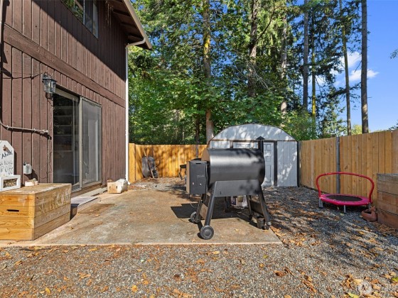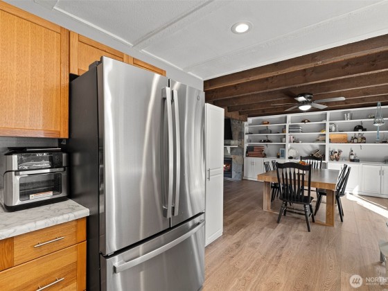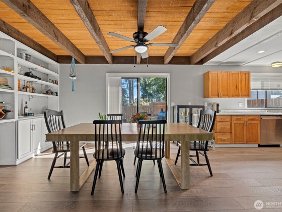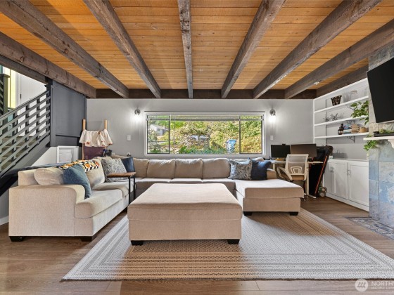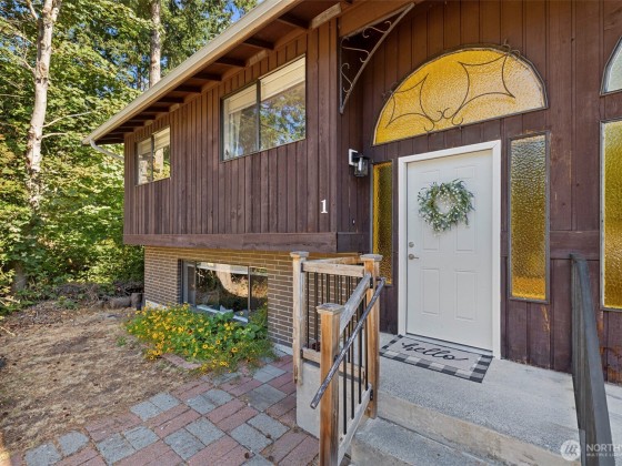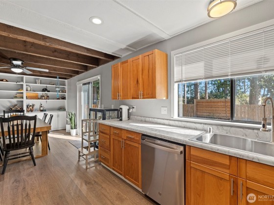 Beautifully updated home on the edge of Oak Harbor, just minutes from NAS Whidbey. Exposed beam ceilings and rich wood textures create warmth throughout. The open-concept main level flows seamlessly from kitchen to living area, anchored by a dramatic stone fireplace and floor-to-ceiling built-ins. Natural light pours through expansive windows, highlighting the design features and character. Retreat to the primary suite featuring a convenient ensuite. Outside, your private oasis awaits with a dedicated fire pit area and fully fenced backyard surrounded by mature trees. Two parking spots included. Meticulously upgraded by current owners and views of Mt Baker!