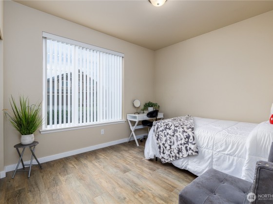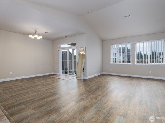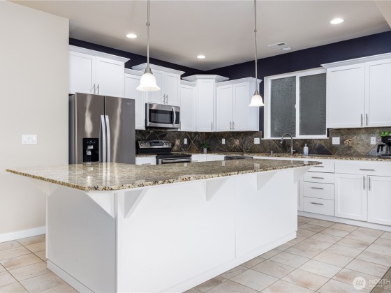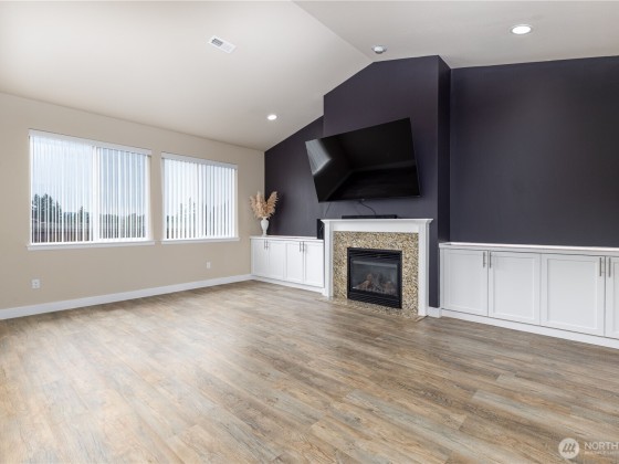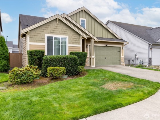 Move-in ready and beautifully designed, this Yelm home is perfectly located just minutes from schools, golf, trails, and medical services. Vaulted ceilings welcome you into the open layout, while the kitchen shines with granite counters, stainless steel appliances, luxury vinyl flooring, and a spacious island with pendant and recessed lighting. The living room offers a cozy gas fireplace and custom built-ins, and the primary suite features a spa-like five-piece bath plus walk-in closet. Sliding glass doors lead to a fenced backyard ideal for outdoor living. With central air and an energy-efficient heat pump, comfort is guaranteed year-round. Convenient commute to JBLM, Olympia, and Lacey, with parks and playgrounds nearby.