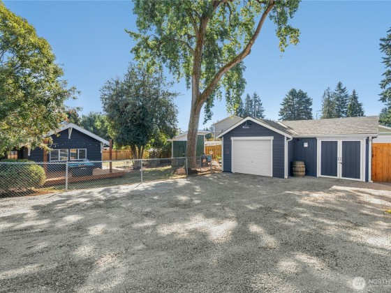 Cozy cottage on corner lot...oozing with charm! This move-in ready gem offers a rare mix of location, lifestyle + livability. Step into a light-filled living room that welcomes with warmth. The updated kitchen offers stainless steel appliances, coffee bar and a cozy eating area—perfect for casual meals or morning coffee. All on one level, you'll find 3 bedrooms and a stylishly updated bath. Another standout is the incredible outdoor space! Whether hosting friends or unwinding under the stars, this backyard retreat is ready year-round. Too many updates to list! Detached garage with shop. Enjoy the convenience of nearby amenities, and quick access I-5 and commuter routes.
