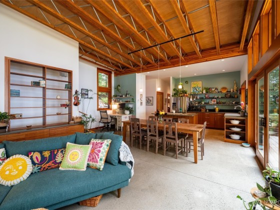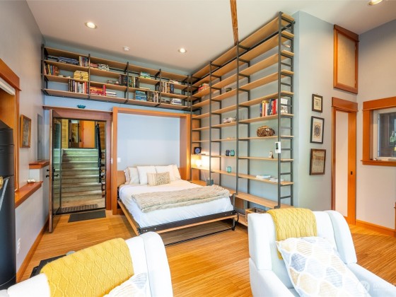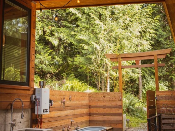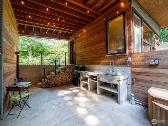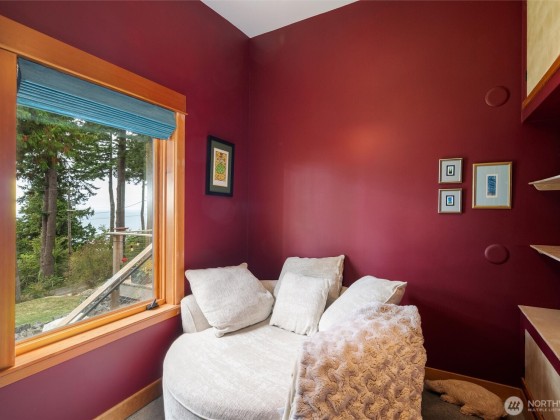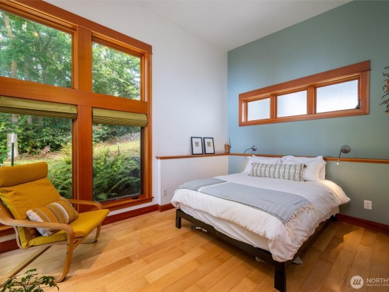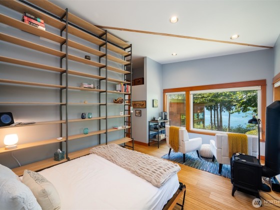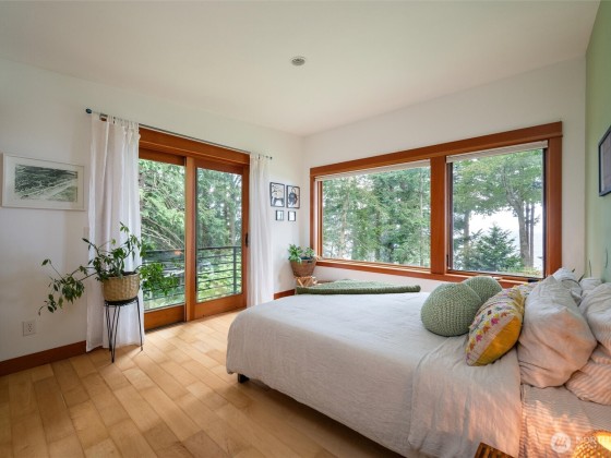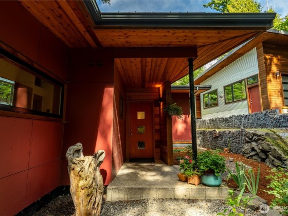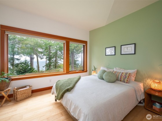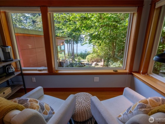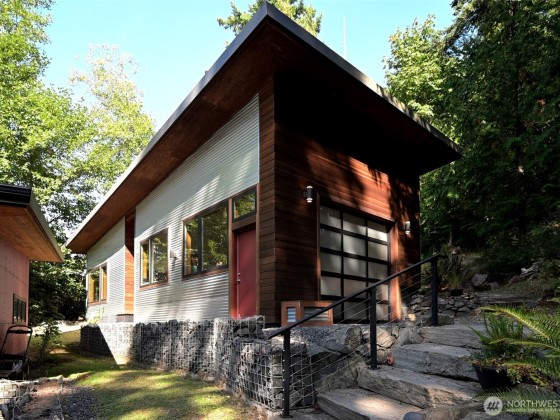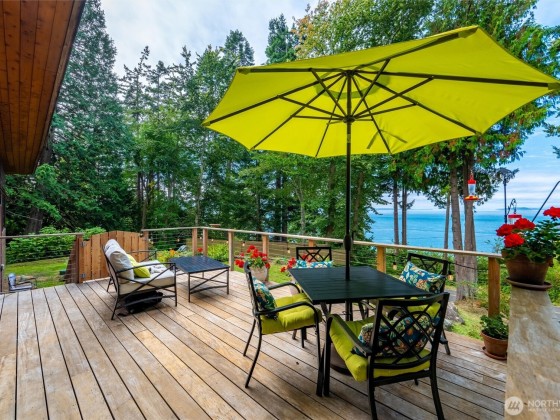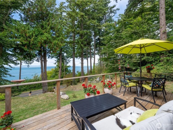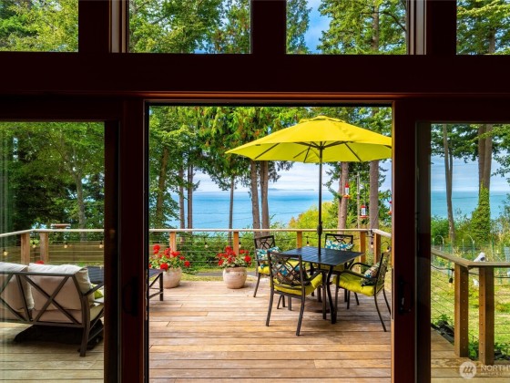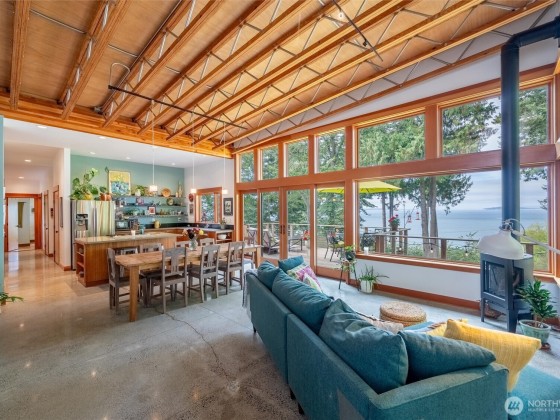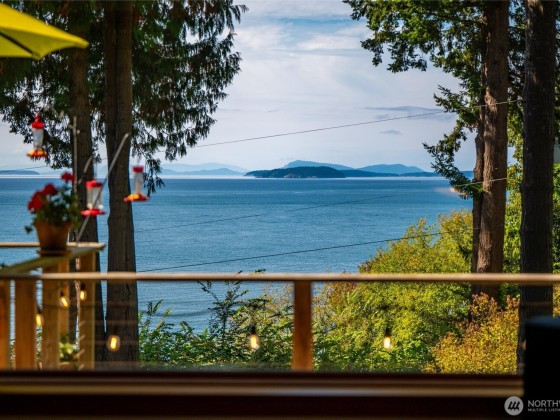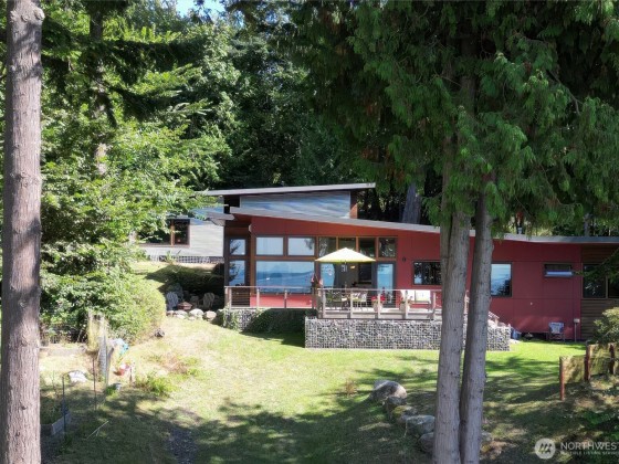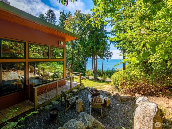 Westside 1.2 acre retreat w/ easy access to sandy beach, sunset & island views, + exceptional privacy. Johnston Architect-designed & locally built, this 2,800 sq ft home blends craftsmanship w/ comfort. Interiors feature radiant-heated concrete & wood floors, custom cabinetry,& fine wood trim, w/ expansive windows capturing the vistas. Outdoor living includes a built-in kitchen, soaking tub behind a torii gate, & shower. Landscaped w/ Pacific Northwest plantings & designed for indoor-outdoor flow. The shop-sized garage offers high ceilings for boats plus generous work areas for artists, woodworkers, & hobbyists +EV charger. Detached studios have a proven short-term rental history, making this both a sanctuary & a lucrative investment.