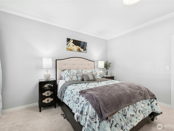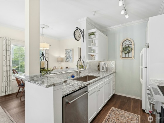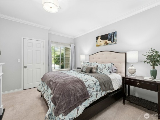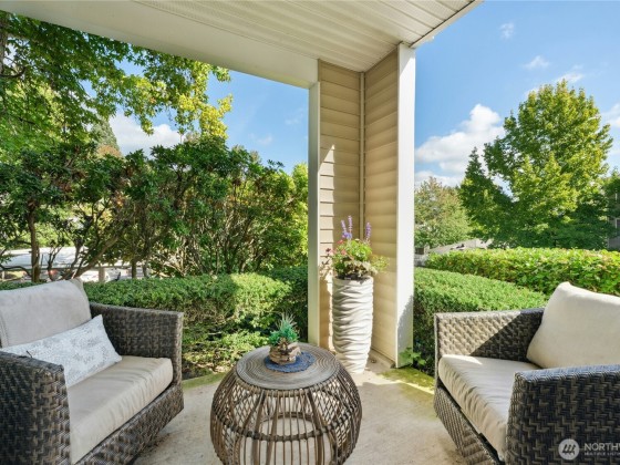 Contemporary fully renovated Condo with an attached Garage in desirable Bryn-Mawr Neighborhood. Centrally located, easy access to I-5, 405, & 167. Bokara by the Lake is a gated community hidden in a lush greenbelt just 7-mi. from Downtown. The beautiful custom designed home Wow's with thoughtful details throughout: 9ft ceilings, open airy concept. New floors, custom wood moldings, designer paint, and built-ins throughout, including garage. The Kitchen offers new premium appliances, Granite counters, full mosaic backsplash & custom maple Cabinetry. Panoramic landscape & seasonal views of Lake Washington plus morning sun & evening sunsets in your private patio. This quiet corner end unit offers all the amenities of a single-family home.