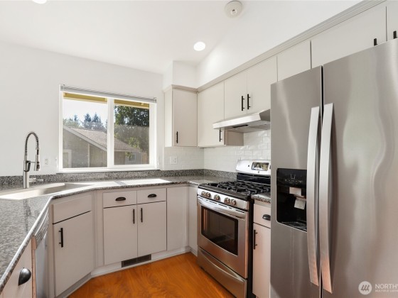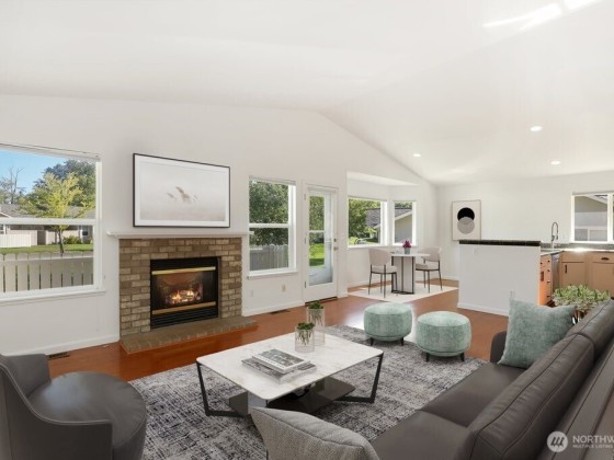 Light, bright, & full of charm, this inviting townhome offers comfortable living in a fantastic location! The open-concept kitchen features a stylish breakfast bar & flows seamlessly into the living room, where beautiful low-maintenance flooring & a cozy fireplace create a warm, welcoming space. Step outside to your semi-private patio overlooking a peaceful greenspace—perfect for relaxing or entertaining. You'll find 2 generously sized bedrooms, a three quarter bath & a full bath with a shower/soaker tub combo, & a convenient laundry/mudroom with direct access to the attached 2-car garage. All appliances are included! Ideally located just minutes from Silverdale’s shopping, dining, and amenities, with easy access to Hwy 303 for commuters.