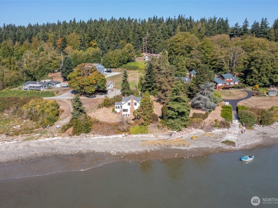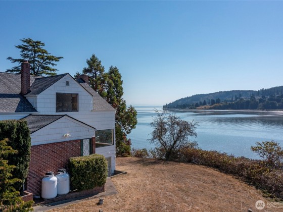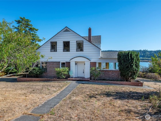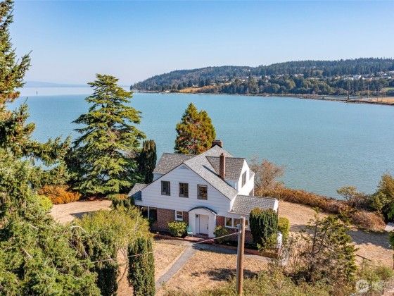 Iconic beachfront home on beautiful Whidbey Island! This majestic 3 story home sits on a 3/4 acre lot in Dugualla Bay with an amazing beach and stunning views. Home was built in 1942, has 3600 sf and tons of potential. Main level includes living room with lots of windows to take in the views, double french doors to the patio, large kitchen, plus bedroom and main bath. Upstairs are more bedrooms and office/den space, all with views, and full bathroom. Lower level has it's own entrance, huge family room with fireplace, 3/4 bath, office, den or studio space, PLUS it's own kitchen. Don't forget the beach! You'll love it. Home needs some love to return to it's former glory. Bring your ideas and make this your very own Island dream home!
