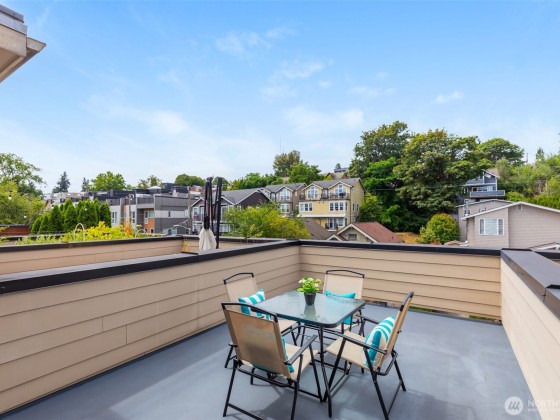 You can’t beat the location of this stunning Madison Valley townhome! With 3 bedrooms, 2.25 baths, & outdoor space on every level, this home is made for entertaining. Kitchen features high end appliances w/gas cooking & a deck perfect for your BBQ. Soaring ceilings, hardwood floors, & oversized windows flood the living room with natural light. Upstairs offers 3 bedrooms, laundry, & a beautiful primary bedroom with a gorgeous en suite bath. Relax on any of your 3 balconies, or go up to your full rooftop deck with sweeping mountain & valley views. Fresh paint, attached garage wired for EV, mudroom, plus an additional large storage area. A/C for the hot summer days! Just 1.5 miles to Madison Park & Lake Washington! Pre inspected, no HOA dues!
