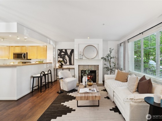 This beautiful 2-bed/1.5 bath townhome unit in Ballard is spacious and contemporary, with tons of natural light and an open floor plan. The unit also features quality details including hardwood floors, electric fireplace and modern stainless steel appliances. The home includes two spacious bedrooms on the lower level and full bathroom. The home comes with ONE assigned parking space in the common garage that is steps from the unit. No special assessments or rental cap. You'll have convenient access to Green Lake, Wallingford and Fremont and a short commute to Downtown Seattle with easy access to Highway 99. Plenty of tasty restaurants, bars, grocery stores, and shopping centers close by, Ballard is a very sought after community to reside in.