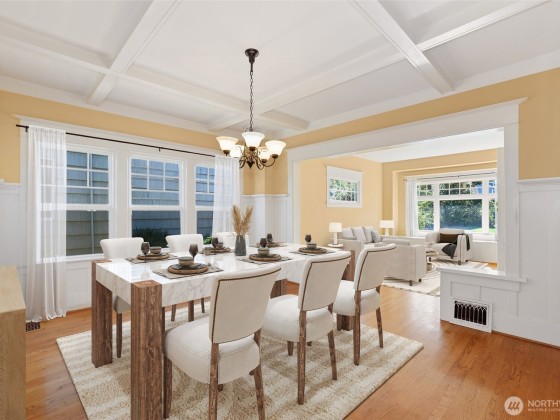 Welcome to this North Tacoma gem! Nestled on a tree-lined street, this home showcases gorgeous coffered ceilings & beautiful hardwood floors that flow throughout. The inviting living spaces are filled w/ natural light, creating warmth & character at every turn. A thoughtfully designed large kitchen & beautiful formal dining room make entertaining delightful, while the spacious living room is encased w/ classic trim adding timeless charm. Convenient 3/4 bath adjacent to the mudroom. Upstairs find 3 spacious bedrooms & bath w/ a claw foot tub! Partially finished basement w/ bonus room. New roof 2022 & 2 car detached garage w/ 240V outlet. Ideally located in Tacoma's most desirable neighborhood near Proctor District, restaurants, & parks!