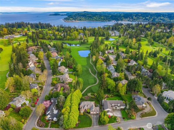 Sited at the head of the 8th fairway of Wing Point Golf & Country Club, this rare, south-facing home has long been considered one of the most prominent & stately properties on the course. Perfectly manicured grounds frame serene views of flowering gardens, tranquil ponds, & majestic evergreens. A thoughtfully designed floorplan provides generous spaces for both relaxed everyday living & sophisticated entertaining including an impressive gourmet kitchen that flows seamlessly to the expansive south-facing decks/yard. 3 spacious bdrms upstairs include a luxurious primary suite w/ a charming private deck. An addt'l 1,400sf of semi-finished attic space offers endless possibilities. Just minutes to the ferry, Winslow’s shops & top-rated schools!