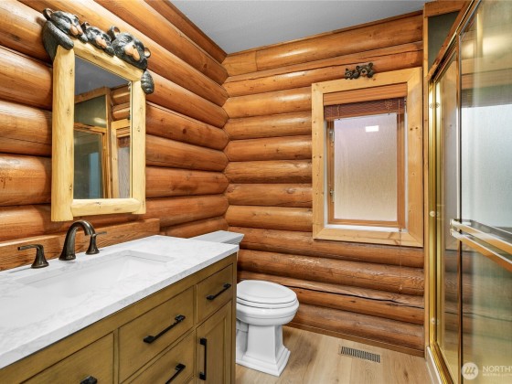 Tranquility abounds on this shy two acre paradise, featuring an immaculate Multi-Gen capable Log Home! Upper floor features vaulted ceilings, woodstove backed with beautiful river rock accent, open-concept kitchen, 3 generous sized bedrooms, 2 ba., & spacious decks. The lower level is all new featuring family rm, large rec rm, 2nd kitchen, 2nd laundry rm, 3/4 bath & Sauna! Property also features standby generator, A/C, walking paths, 24x24 2-car carport, 24x24 insulated & heated workshop w/ 12 ft sliding door, RV pkg, dog kennel, & more.. Enjoy the serenity, truly gorgeous fir trees, and deer that frequent the property! Great location 10 min. NW of downtown Enumclaw, with hiking, biking, fishing, skiing at your back door. Don't miss out!