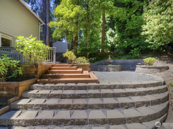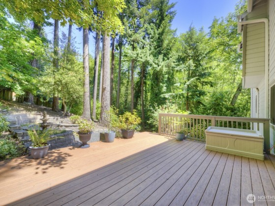 This tranquil private house is nestled in Northwest Nature. Live among the trees, wildlife and gardens. Enter into a bright, airy ambiance in vaulted living room with gas fireplace. Dining room opens off the kitchen with access to a viewing deck. Kitchen looks out to territorial view. Newer fridge and gas stove. Primary suite is a serene retreat with a sitting deck for morning coffee and a 5-piece Spa-inspired marble bathroom. Downstairs includes 3 bd, 1 full bath. Expansive family room with fireplace. Off the family room is a kitchenette. Perfect for adding an ADU/ Guest Suite. Outdoor landscaping includes terraced areas, water fountain and gathering area. Close to Parks, New Transit Station, Schools. Desirable location. Welcome Home!