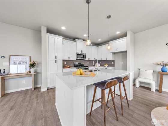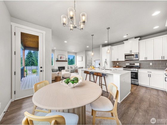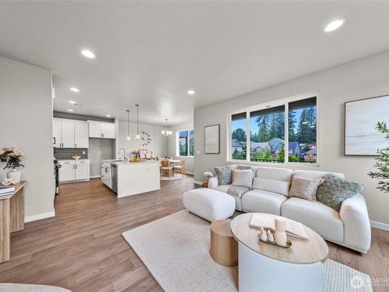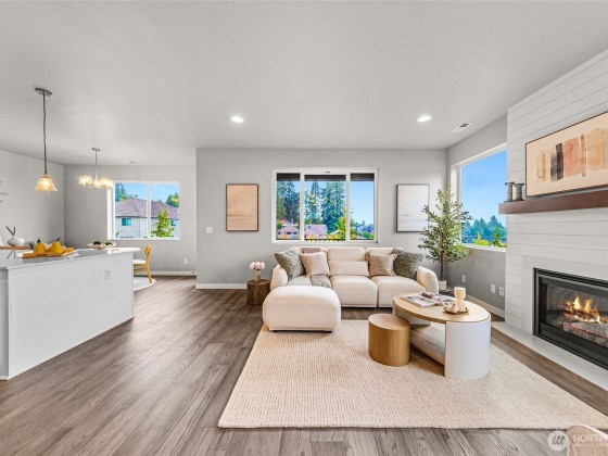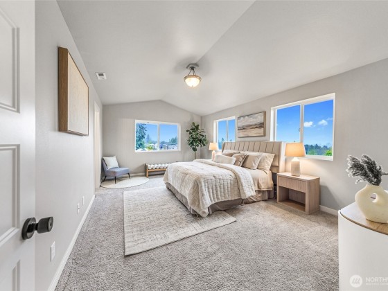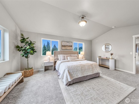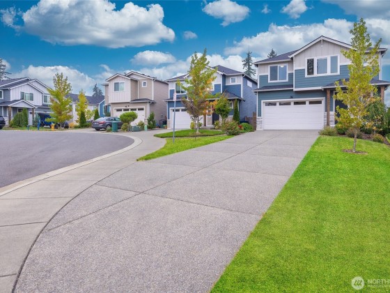 Stunning Lake Stevens home with breathtaking views of Mt. Baker, the Cascades, and the lake! Perfectly situated on a spacious fully fenced corner lot in a peaceful cul-de-sac, this 2021 Cornerstone build offers privacy, modern design, and the best of convenience. Just minutes to Costco, Target, dining, and I-5, yet tucked in a quiet neighborhood with highly rated schools. Open main level features a chef’s kitchen with quartz counters, great room, dining area, and powder bath. Upstairs offers 4 bedrooms, laundry, and a spacious master suite with gorgeous views. Finished daylight basement adds a rec room, full bath, and bedroom—ideal for guests or multi-gen living. Covered deck, landscaped yard, and neighborhood park complete this rare find!