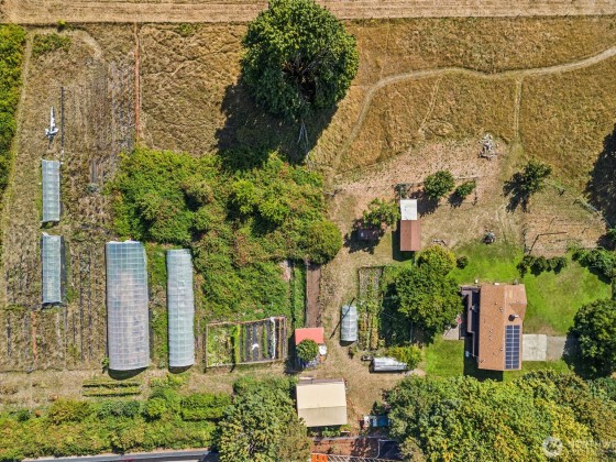 One of a kind! Part of 1845 George Bush Settlement, this 5 acre farm blends history & modern comfort. Home’s open, airy main level features big windows framing sweeping pastoral views, huge granite & stainless kitchen, dining w/access to large deck. Cozy gas FP warms living rm, while primary suite enjoys heated floors & private ¾ bath. Walk-out bsmt (MIL?) w/2nd kitchen, FP, fam rm, 3/4 BA. Ductless HVAC, on-demand gen & rooftop solar add efficiency, peace of mind. 1,080sf shop w/walk-in cooler, seed grow rm. Dbl poultry coop, hoop houses, outbldgs, pastures w/Mt Rainier views. Harvest ready fruits/veg’s, century-old apple trees, grand old butternut trees! Whether your goal is community farming or quiet country life, your dream starts here!