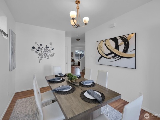Welcome to this bright, cheerful home filled with natural light. The open-concept layout connects the spacious living and dining areas. The kitchen offers ample cabinetry and a central island with bar seating. This home features 4 bedrooms and 2.5 bathrooms, including a primary suite with a walk-in closet and ensuite bath, plus brand-new carpet upstairs for a fresh feel. Low maintenance yard perfect for a commuter. Conveniently located in Lynnwood near shopping, dining, and major freeways.