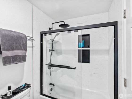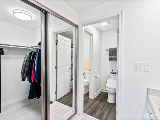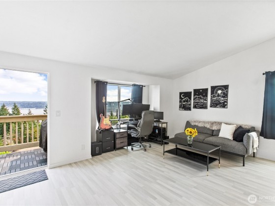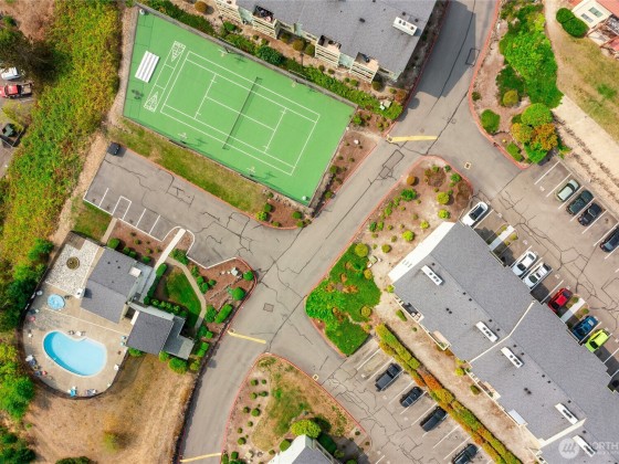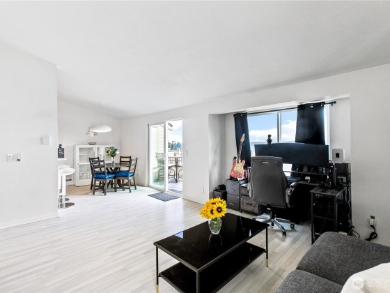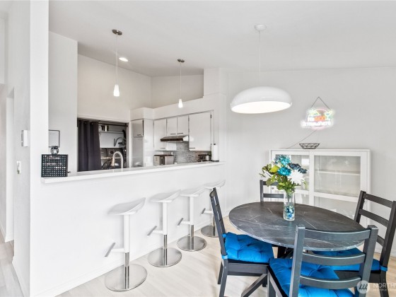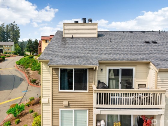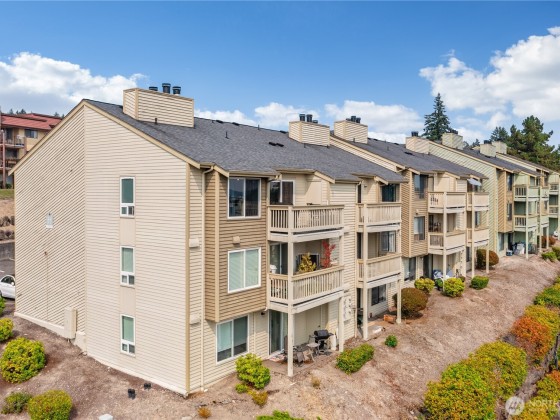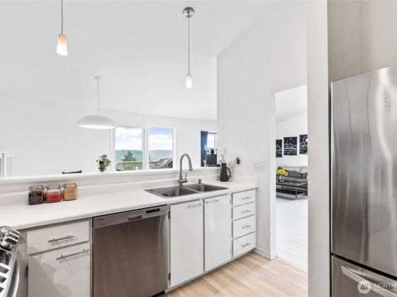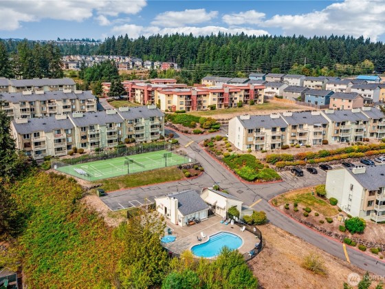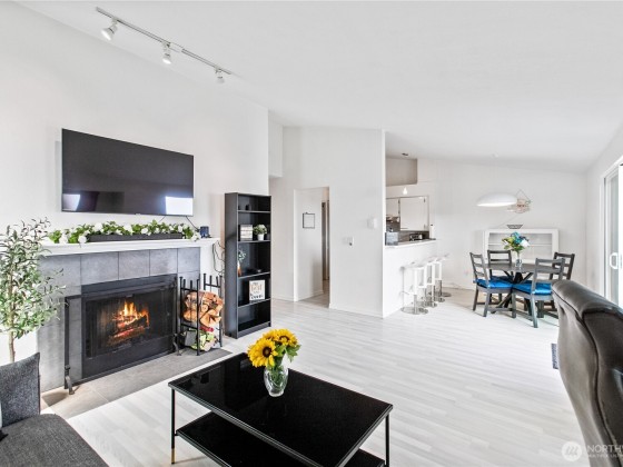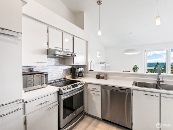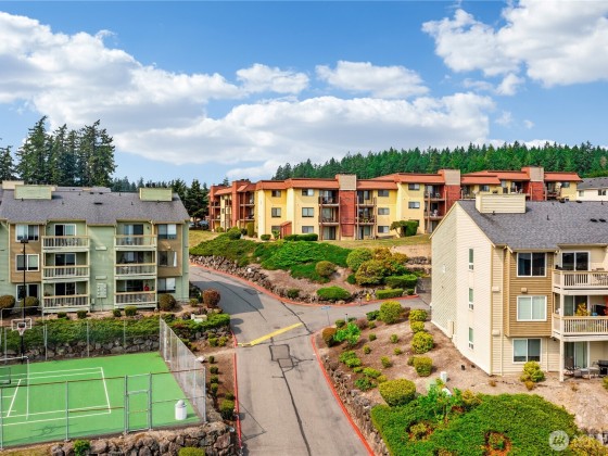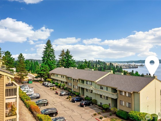 Top-floor corner unit with epic Sound and mountain views from your private balcony! The open-concept living space features vaulted ceilings, newer plank floors, and windows on two sides to keep it bright and airy. No upstairs neighbors = peace and quiet. Sleek and sophisticated updates shine in the kitchen and bath. You’ll also love the in-unit laundry and your own reserved parking spot (H-17). Chill at the pool, hit the gym, play tennis, or take your pup to the dog park. Quick hop to bases, the freeway, and the Seattle ferry. Stylish, functional, and totally ready for your PNW lifestyle.
