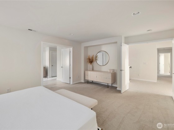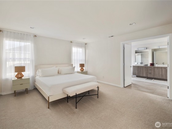 Discover luxury living in this stunning MainVue home in Lea Hill! Featuring 4 beds, 2.5 baths, an office, and a bonus room across 3,082 sqft. The chef’s kitchen boasts white soft-close cabinets, quartz countertops, SS appliances, an oversized island, and a walk-in pantry with extended storage. Enjoy the open layout with laminate floors, expansive windows, and a covered outdoor deck. The huge primary suite offers a 5-piece bath with dual vanities, a custom tile shower, a soaking tub, and a walk-in closet. Corner lot with Mt. Rainier views, 3-car garage, and minutes to schools, parks, and highways. Tour today!