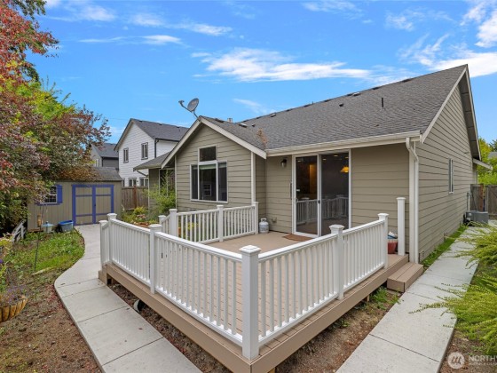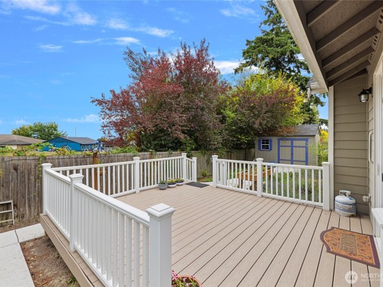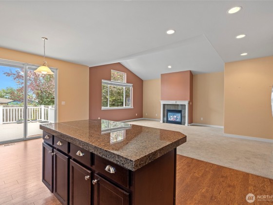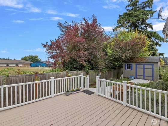 Sought-after Hillcrest location on Mount Vernon Hill! This charming one-level home features an open layout w/ vaulted ceilings, a cozy gas fireplace, and a chefs kitchen. Large island, granite counters, eating bar, walk-in pantry, and new stainless appliances. The generous dining area flows to the living space w/easy-care laminate floors & new living room carpet. The spacious primary suite includes a soaker tub, walk-in shower, double vanity and walk-in closet. AC to keep you comfy in the summer. Brand-new expansive deck, concrete pathways, fully fenced yard plus a storage shed—perfect for entertaining or relaxing. Easy access to I-5, shopping, medical facilities, pickleball courts, Hillcrest Park and Little Mountain for hiking and biking.
