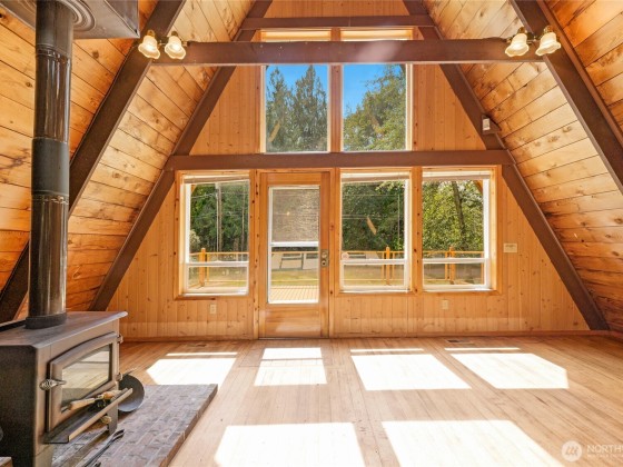 This wonderful "A" frame style cabin with 2 bathrooms and 2 bedrooms on nearly a 1/2 acre level lot is a gem! It's just across the street from the famous Skagit River and Steelhead fishing! The home has an updated kitchen, new flooring, new tankless water heater, new furnace. All new decking and railing. Cozy wood burning free standing fireplace warms the whole house. All of the natural fir flooring, cedar and pine walls have been retained. Community water, power and a 2 bedroom septic system. There is also the Cape Horn Community lot which has outdoor BBQ, play sets, picnic tables, and a wonderful sandy beach at the river. Enjoy fly fishing, backpacking, nature watching, or just relaxing.