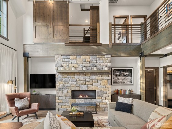 Nestled in the gated River Ridge neighborhood at Suncadia, this mountain retreat offers 4 bedrooms, 3.5 baths, and a light-filled open layout with vaulted ceilings, dramatic stone fireplace, and western-facing windows capturing sunset mountain views. Warm wood accents and high-end finishes add timeless appeal. A sleek floating staircase leads to a lofted upper level with additional spacious bedrooms. Relax outdoors with a private hot tub, fire pit, and direct trail access to the 1,200-acre Cle Elum River Conservancy. Peacefully set with no homes in front or behind, plus a detached garage with EV charger. Pre-inspected for peace of mind, with negotiable furniture to streamline move-in, and just a 5-min walk to the Nelson Farm amenities.