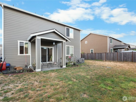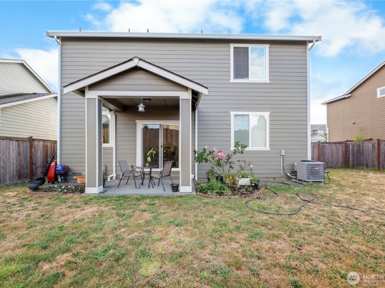 Come explore this beautifully maintained 3-bedroom, 2.5-bath home with an ideal layout! The main floor boasts an open kitchen with granite counters, a spacious living area, and engineered hardwood throughout. Perfect for hosting, the main level flows to a covered patio for year-round enjoyment. Upstairs offers a generous primary suite with a 5-piece bath, soaking tub, and large walk-in closet. The two additional bedrooms also include walk-in closets and surround a versatile loft—ideal as a den, office, or media room. Upper-level flooring was updated with durable LVP in 2021. Stay comfortable year-round with A/C, and let your imagination shape the backyard. Located in a welcoming neighborhood within walking distance to a park and playground.