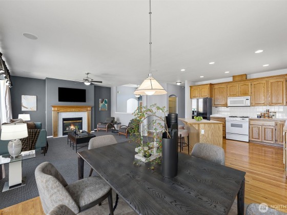 NEW ROOF & NEW PRICE! Hard-to-find 2,292 SF single-story home in the sought-after gated community of Cedars Bend @ River View! 3 bedrooms PLUS bonus room/office, 2 living and 2 dining areas! Versatile floorplan for everyday living & entertaining. Step inside to find gleaming hardwood floors, soaring ceilings, and spacious open-concept layout. Eat-in kitchen complete with island, walk-in pantry, & sunny slider that opens to the fully fenced backyard. Front room includes cozy gas fireplace. Primary suite features recently remodeled ensuite bathroom with generously sized low-threshold shower & walk-in closet. A/C (heat pump) & 3-car garage! Nearby access to community park, rivers, golf course, and paved trails for walking, running, or biking.