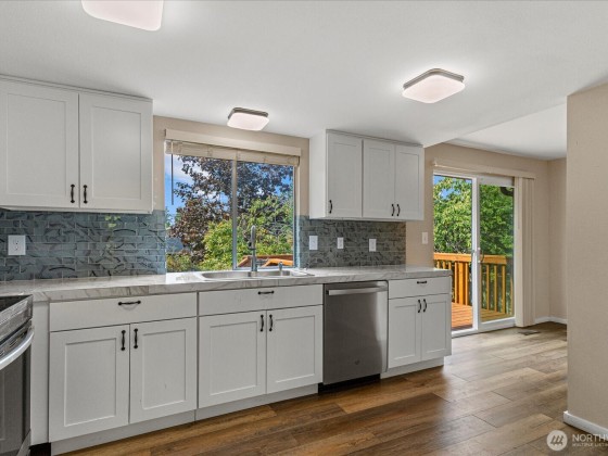 WOW!! Very Nice 1760 SF 3 Bedroom 2.5 Bath And 480 Sf 2 Car Garage. This Beautiful Home Stands Proud on a Large 8,276 Sf Lot located On a Quiet CUL- DE- SAC in the Heart of Lynnwood & AWARD WINNING EDMONDS SCHOOL DISTRICT. VINYL PLANK (like) Floors on Main Level. Upper Level has Formal Living Room w/ Gas Fireplace, Formal Dinning Room and Large Updated Kitchen w/ STAINLESS STEEL APPLIANCES, QUARTZ COUNTERS, Nice White Kitchen Cabinets & Tile Backsplash & Chrome Hardware. Outdoor Upper Sliding Door To Enjoy the NEW CEDAR SUNDECK. Large Downstairs Recreation Room with Hardwood (like) Floors And Another Gas Fireplace & Wet Bar. Laundry Rm and 3/4 Bath Large 2 Car Garage w/ Room For Bonus Area. Space For RV Parking.
