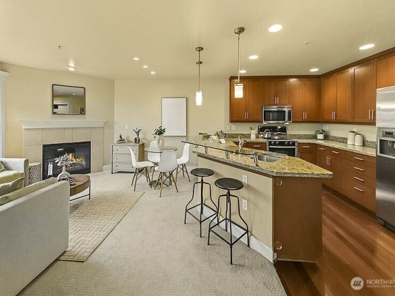 Timeless elegance meets tranquil living at Blue Heron in Magnolia. This 2 bedroom end unit is move-in ready and features fresh paint and brand new carpet! The spacious kitchen is a true centerpiece with granite countertops, stainless steel appliances, abundant storage, and a large island perfect for cooking. Located just blocks from Discovery Park and the trail to Ballard Locks, you’ll love the easy access to nature, shops, and transit without compromise. Additional features include an in-unit washer/dryer, assigned parking in a secured garage, and a storage unit. This well-maintained building has a secure lobby entrance, is pet-friendly, and has no rental cap, with easy bike and metro access to downtown. Pre-inspected for your convenience.