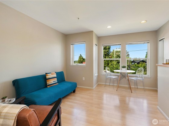 Welcome to this bright & inviting 1-bedroom condo perfectly situated in the vibrant Green Lake neighborhood! Freshly painted with a mix of new carpet & sleek laminate flooring, this home offers a warm, modern feel throughout. Enjoy an abundance of natural light streaming through large windows and an efficient, open layout that maximizes every inch of space. The custom-built kitchen island adds both function & style as it is moveable, a perfect spot for meal prep or casual dining. Located in the heart of Tangletown with Kisaku Sushi, Mighty-O Donuts, Zoka Coffee, TangleTown Public House, Woodland Park, Green Lake and more -everything you need right outside your door. Easy access to I5, 99 and public transportation. Parking and storage, too!