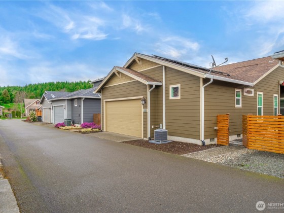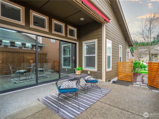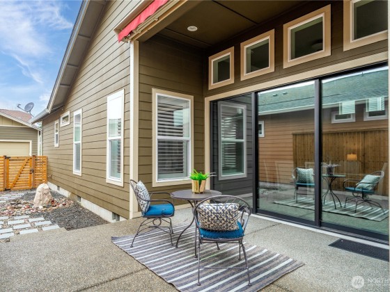 Resort 55+ living at Trilogy at Tehaleh! Better than new, this gorgeous home boasts over $100K in stunning upgrades. 2nd bedroom could easily be enclosed. Pristine kitchen, Quartz counters & extensive Engineered hardwoods w/ tile floors & Quartz in baths. Top tier trim package & crown throughout, custom blinds/shutters. "Smart Space" = laundry/office/crafting. Striking 3 panel wall of glass (w/ polarized tint) leads to private & low maintenance oversized side yard w/ water feature & motorized awning. Finished 2 car garage, solar panels & new AC. New interior/exterior paint & gutters. $9500 Club fee is waived for Buyer! Walk to Lodge/pool/fitness/restaurant & bar/Pickleball, Post & Pour, retail & trails. Live your best life in Trilogy!