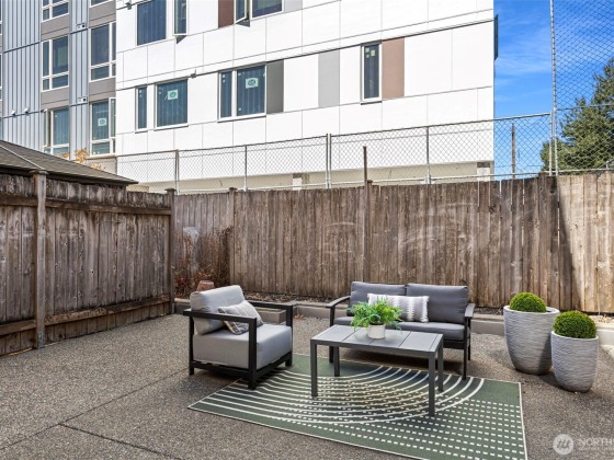 New price, great value! Live steps from vibrant shops, top-rated restaurants & bars, artisan bakeries, indie coffee houses - everything you love, right at your doorstep. Fitness lovers will thrive in the abundance of nearby studios, trails & gyms. Freshly painted, this spacious condo features a smart, open layout perfect for modern living. The kitchen is outfitted with quartz counterts, ss appliances & lots of storage. Primary bed offers a coveted en-suite ¾ bath. Enjoy the outdoors with two private spaces - a charming balcony AND a rare, large fenced private patio. Extras include in-unit laundry, a garage spot, storage unit, and a pet-friendly bldg with a responsible HOA. All in one of the most walkable, energetic neighborhoods in Seattle!