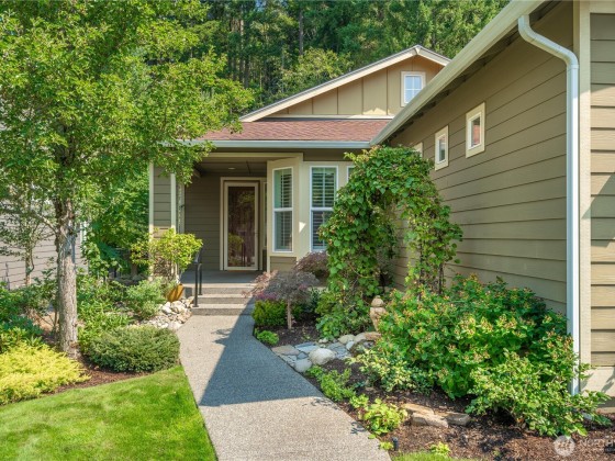 Resort 55+ living at Trilogy at Tehaleh! Very popular, highly upgraded & customized "Monaco" on an extremely private, desirable greenbelt lot! The outdoor space is amazing w/ the oversized covered patio (w/ motorized screen) & stone fireplace leading to the expansive deck overlooking the forest. Quartz, Jenn-Air, custom lighting fixtures, Hunter Douglas shades, Plantation shutters, upgraded trim, solar tube, AC & many stunning designer features. Beautiful, low maintenance backyard w/ deck extension, pavers & irrigation. Relax or entertain while overlooking your private greenbelt oasis. Generous garage w/ work bench & hanging storage. A quick walk to the private Lodge (pool, fitness, social & much more), Post & Pour Bistro, trails & retail!
