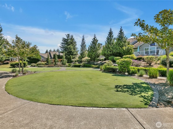 Waiting just for you - tucked away gated community of Sorano in Lakeland Hills! Beautiful 2 bed, 2.25 bath townhome offering low-maintenance living in a peaceful, well-kept community. Enjoy your morning coffee on the private deck overlooking a manicured putting green and picnic area—a serene and scenic backdrop right outside your door. The spacious main level primary suite with vaulted ceilings includes a walk-in closet and en-suite bath with step in shower for added comfort and convenience. Upstairs features additional bedroom and full bath, a versatile light and bright loft area, perfect for a home office, reading nook, or flex space. Smart layout, modern touches, and a low-maintenance lifestyle—this townhome has it all!