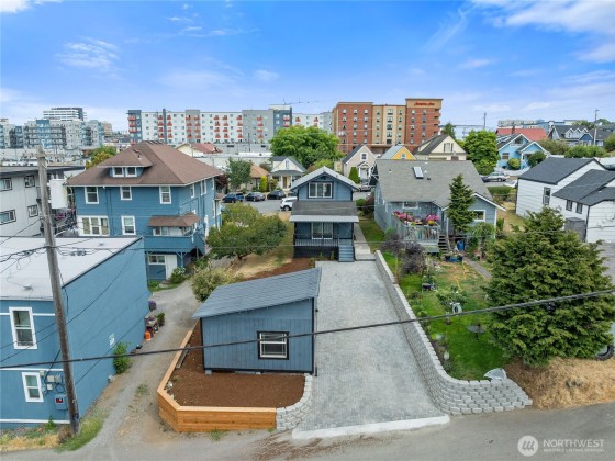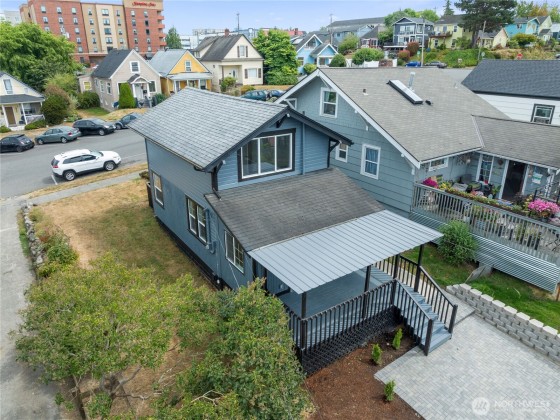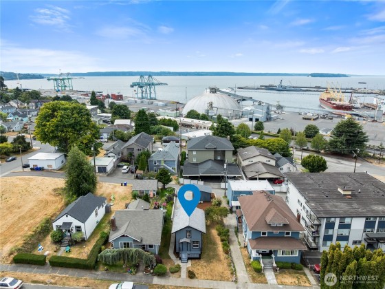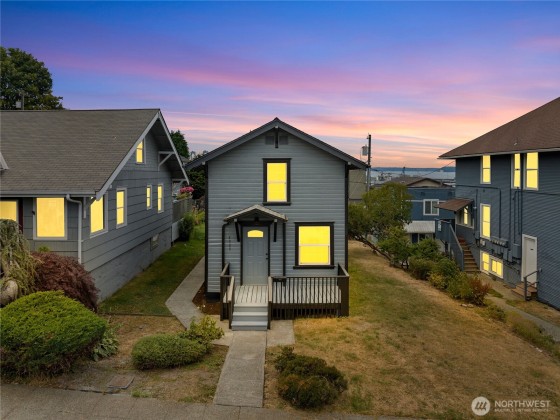 Price Improvement! Charming & beaming Rucker Hill bungalow with Puget Sound views! This beauty blends timeless character with meaningful upgrades. Just under 1,000 sq ft + approx. 200 sq ft detached shed—ideal for a potential office, studio, or guest space. Step into a spacious living room that flows into a chic kitchen w/ quartz counters, SS appliances & new cabinets. Bright dining area perfect for gatherings. Engineered hardwoods throughout, fresh paint in & out, and tons of natural light. Stylish full bath with tile & modern vanity. 2 generous bedrooms upstairs—one with Sound views! Enjoy a covered patio, spacious backyard, and plenty of parking for multiple cars or RV. Close to hospitals, shops & dining!