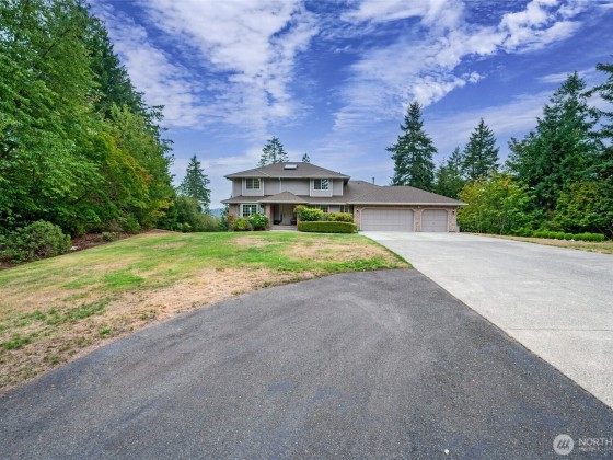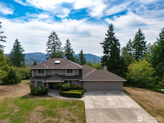 Custom 2-story w/fully finished basement on 18.56 acres. Potential to subdivide. Territorial view of mt & valley. Landscaped lawn, garden beds, large driveway w/room for RV parking & attached 3-car garage. Big deck off the kitchen to watch sunsets or the grazing deer nearby. Main floor includes living room, formal & informal dining, kitchen island cooktop, family room A/C, 1/2 bath, laundry room, den. Vaulted ceiling entry, hardwoods, & skylight lead upstairs to 3 bdrms, 2 baths including the primary suite w/jetted tub & walk-in closet. Downstairs has 2 extra finished rooms, 1 bath, rec room w/kitchenette & huge storage room. Propane gas FA, septic, public water in this comfortable country home, private, yet close to all amenities.
