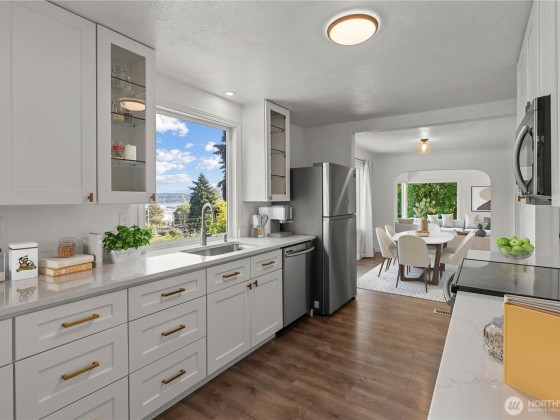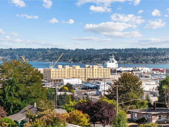 Vintage charm meets modern living in this spacious home, beautifully updated with quartz counters and refreshed kitchen and baths while preserving its timeless character. Oversized picture windows frame sparkling views of Sinclair Inlet and city lights, flooding the home with natural light. Three levels of flexible living include a huge finished basement—perfect for a rec room, office, gym, or theater. Two main-level bedrooms offer convenience, while a terraced yard with garden potential and back patio invite outdoor living—with stunning Mt. Rainier views on clear days. Complete with a carport and an unbeatable location near the Navy Shipyard, highway access, and the Seattle/Bremerton ferry, this home truly has it all.